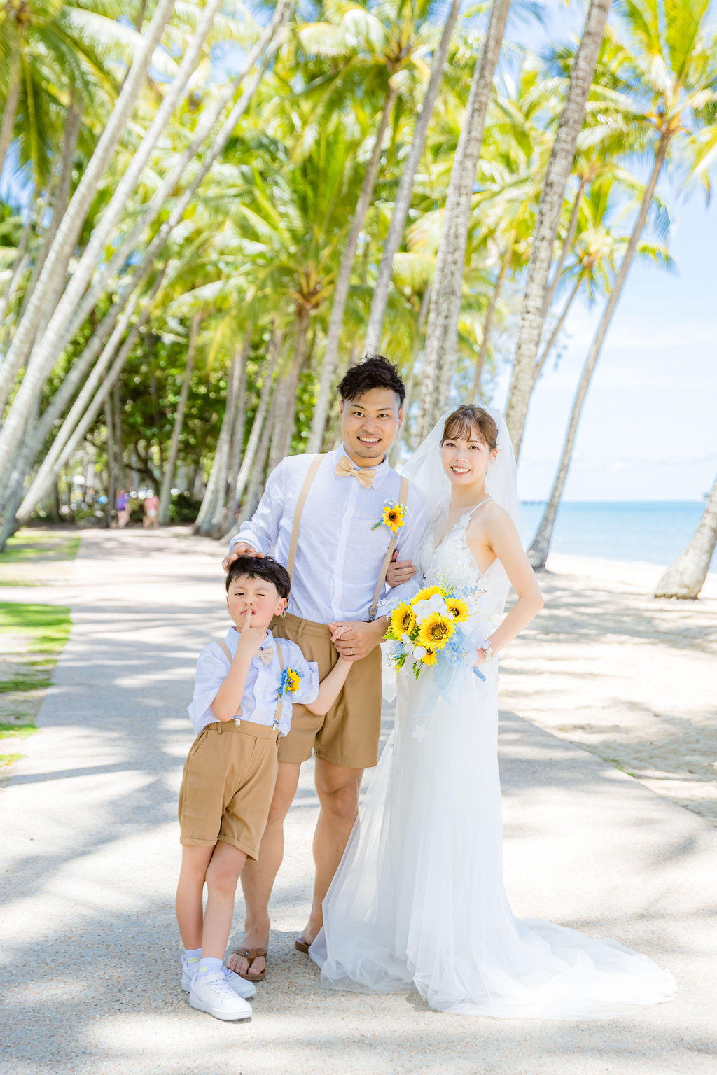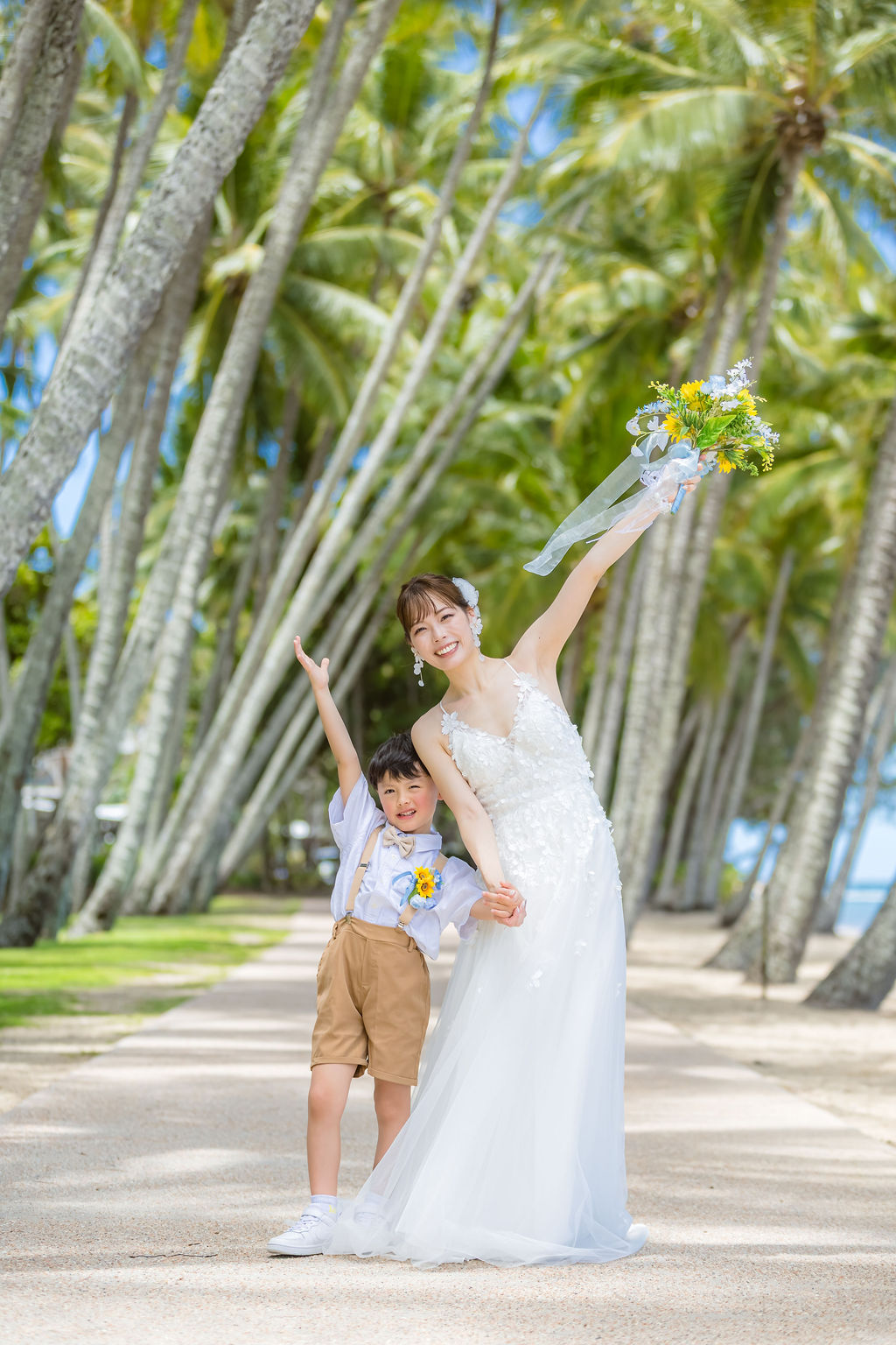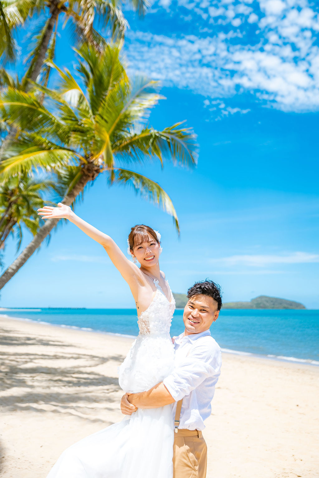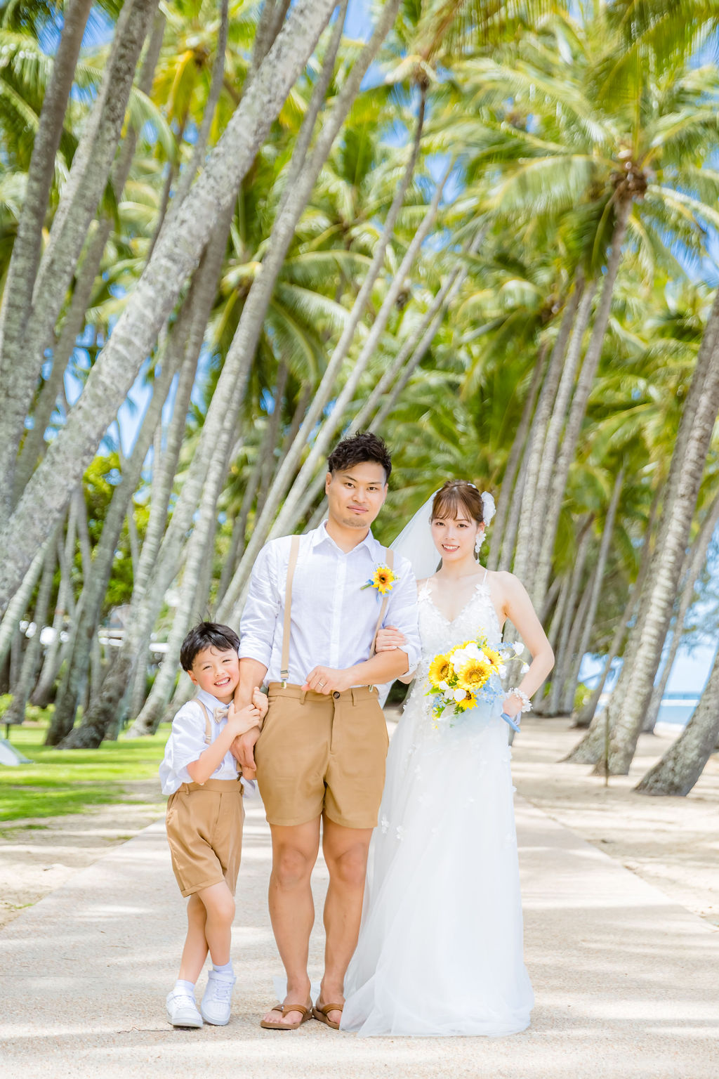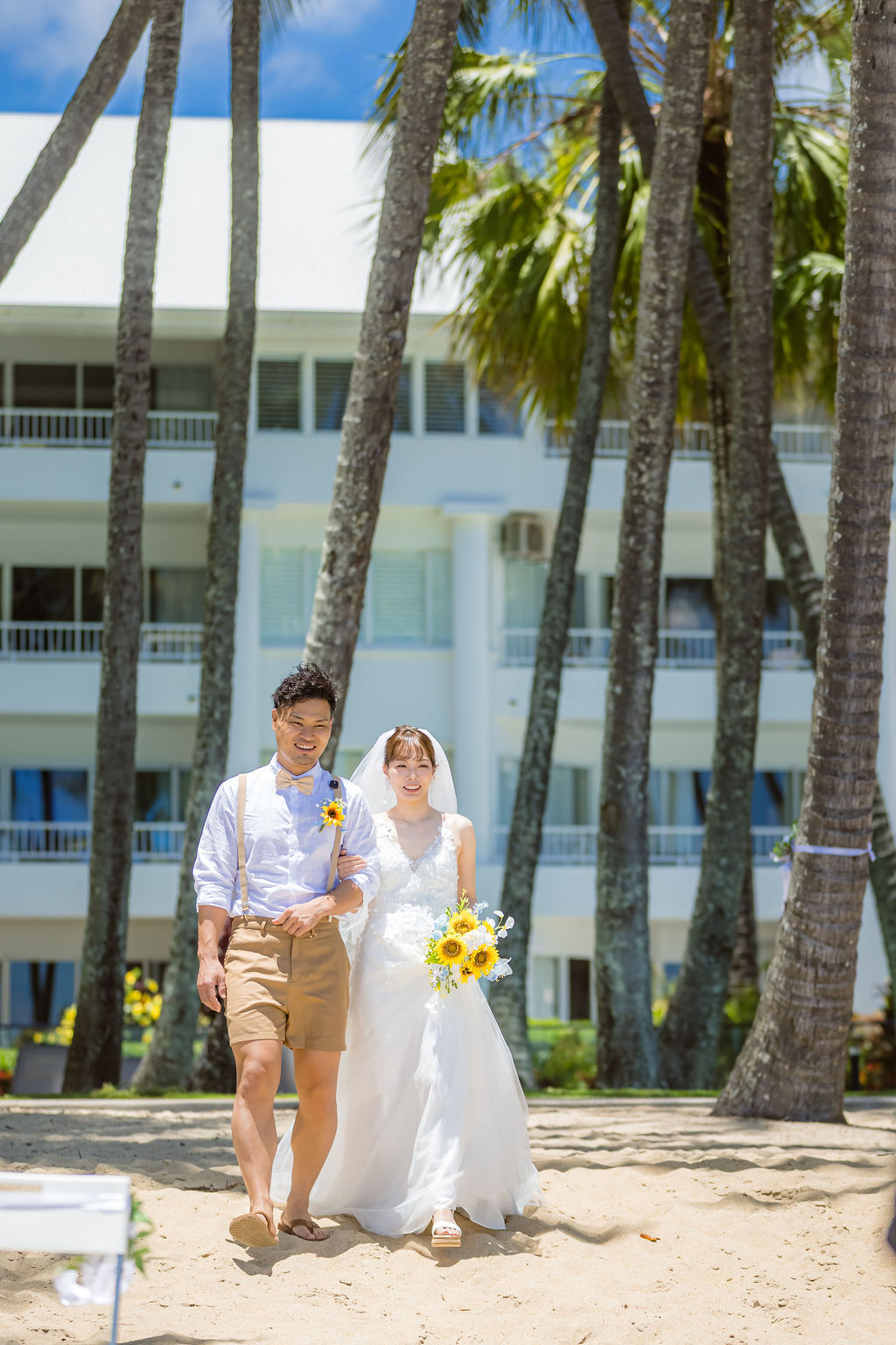 広がるヤシの木並木と青い海、白い砂浜が魅力のロマンティックなロケーションです。