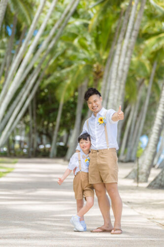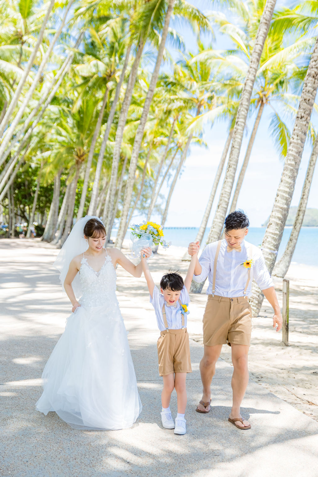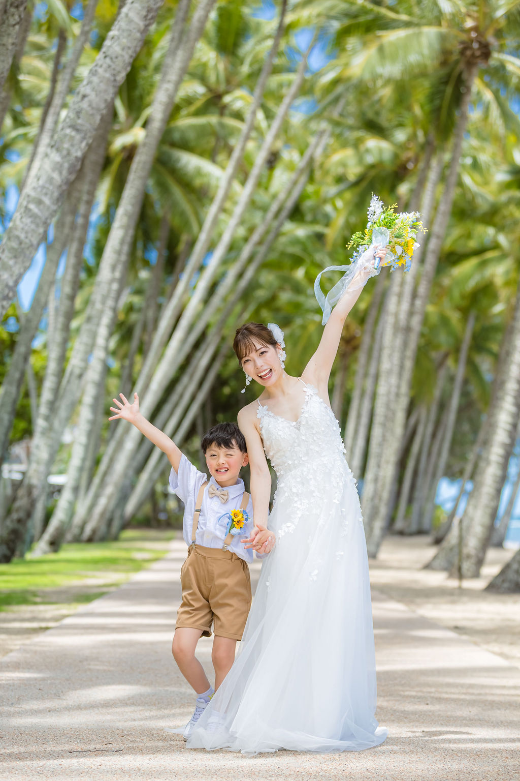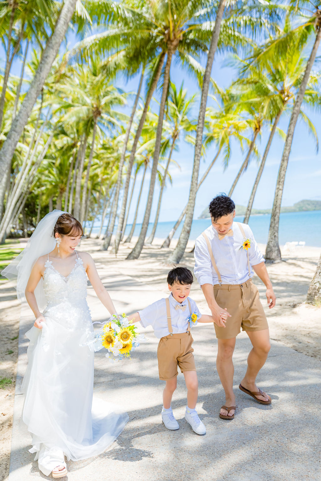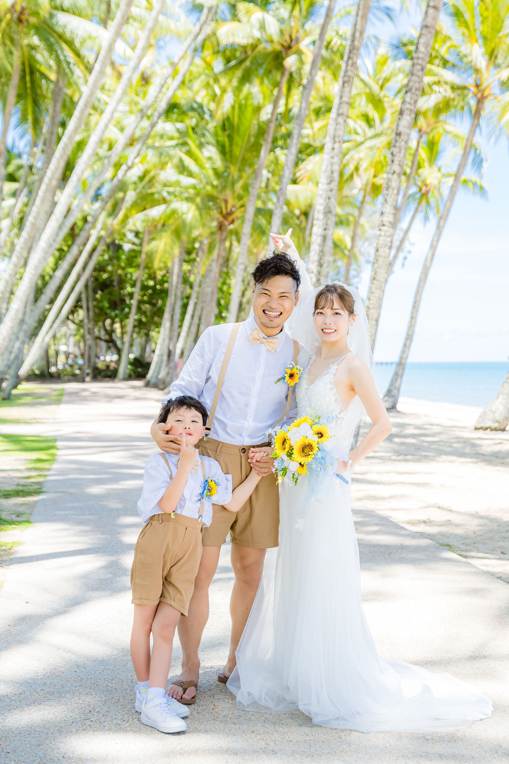 広がるヤシの木並木と青い海、白い砂浜が魅力のロマンティックなロケーションです。