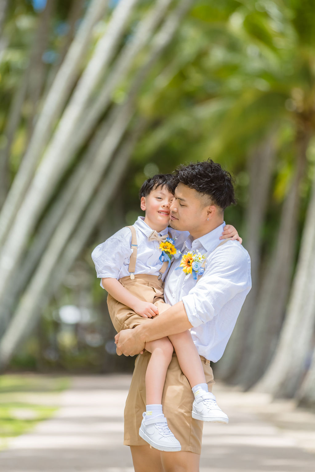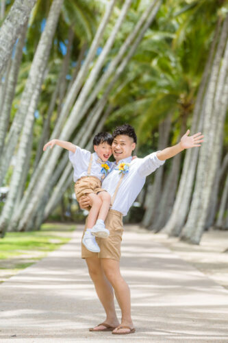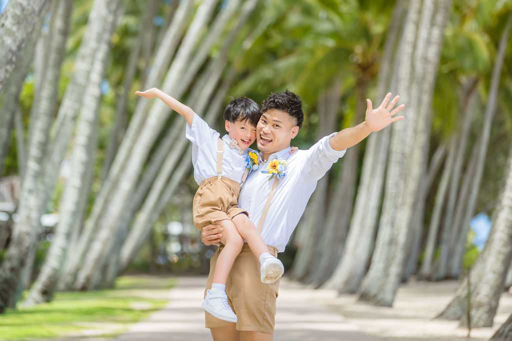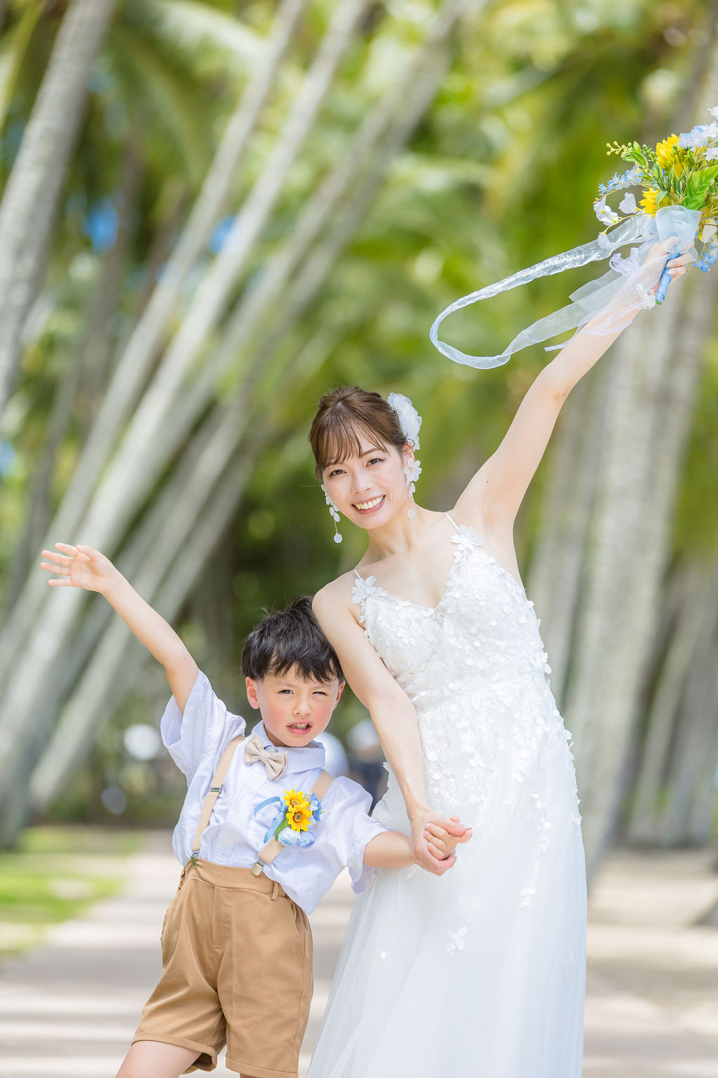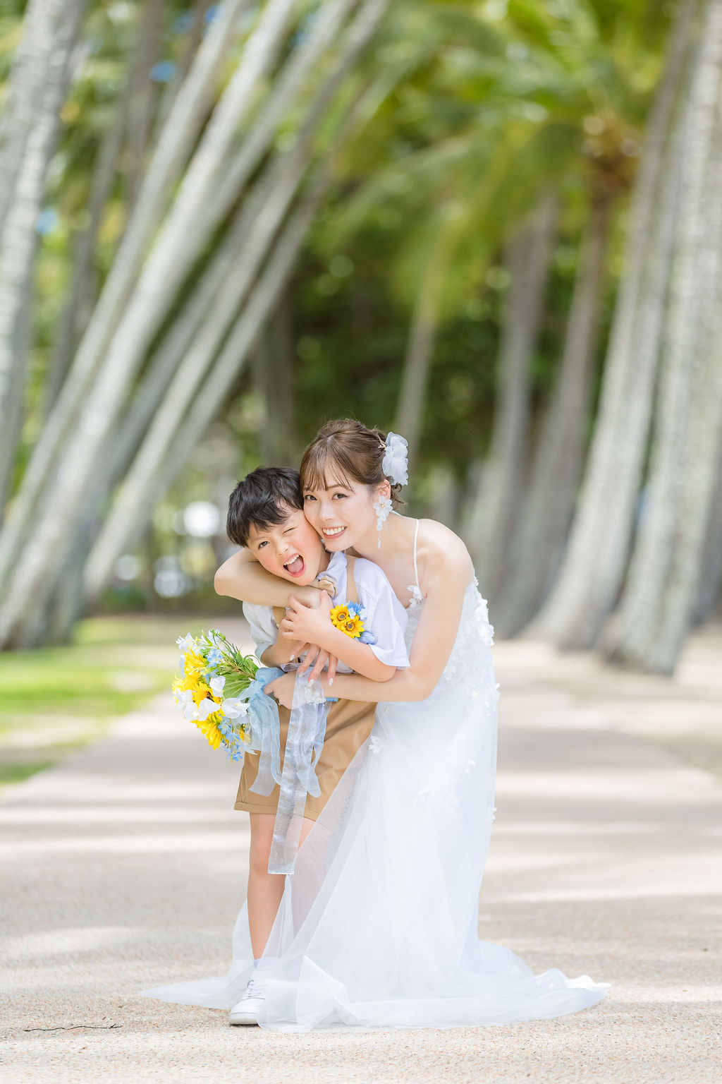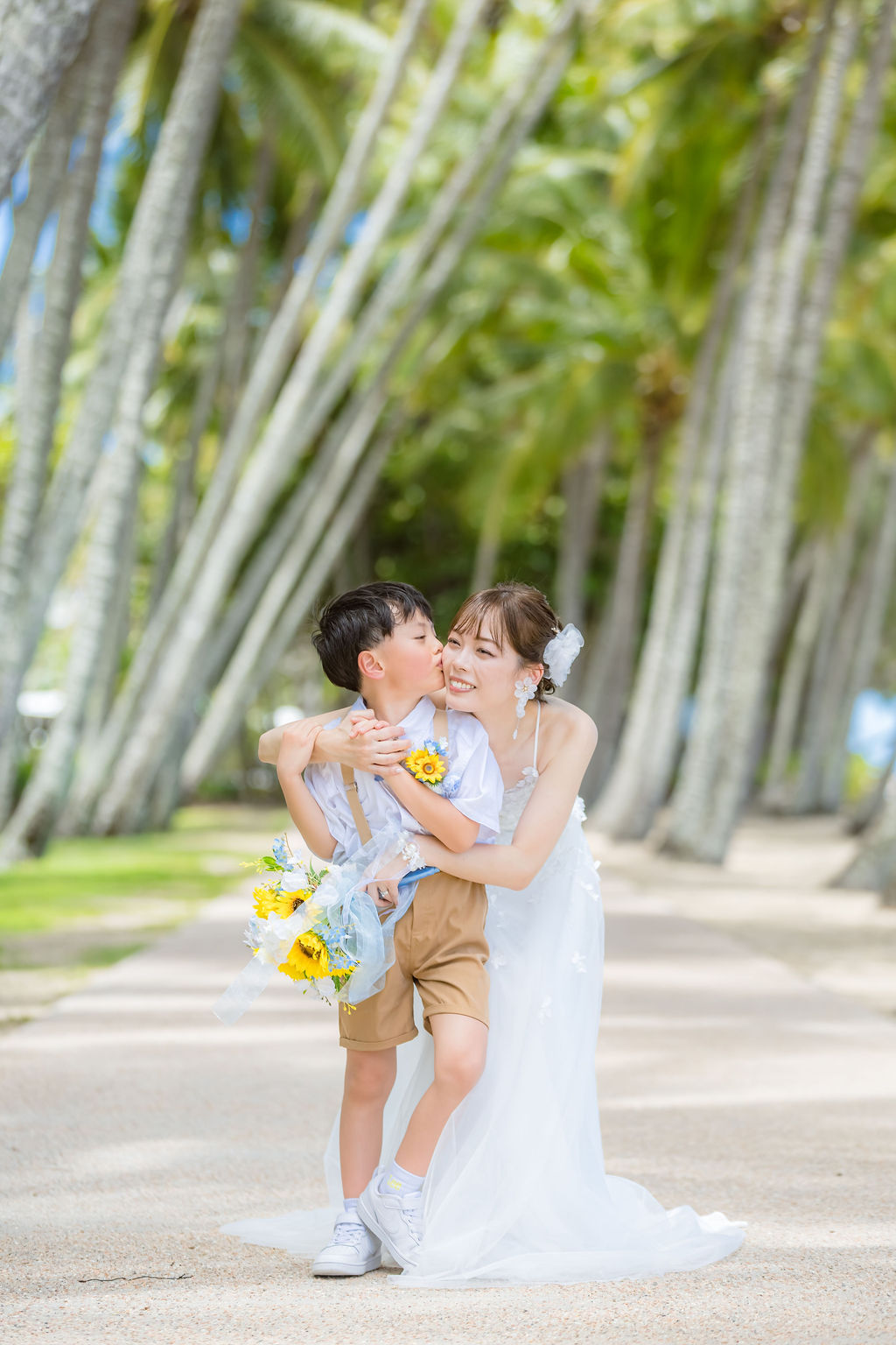 広がるヤシの木並木と青い海、白い砂浜が魅力のロマンティックなロケーションです。