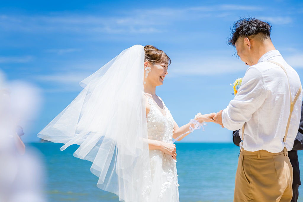 海を背景にしたビーチ挙式は、自然に包まれた開放感の中で行う特別なセレモニー。