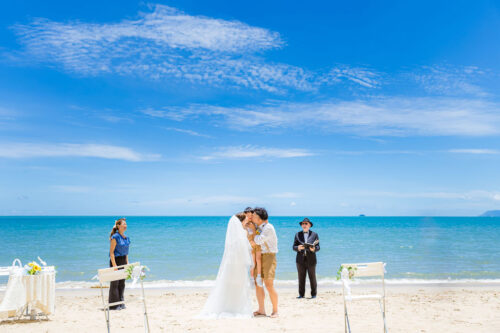ケアンズウェディングでは、既定のパッケージプランなどではなくお客様のご希望イメージやご予算をお伺いしたうえでのカスタマイズのウェディングプロデュースをしております。